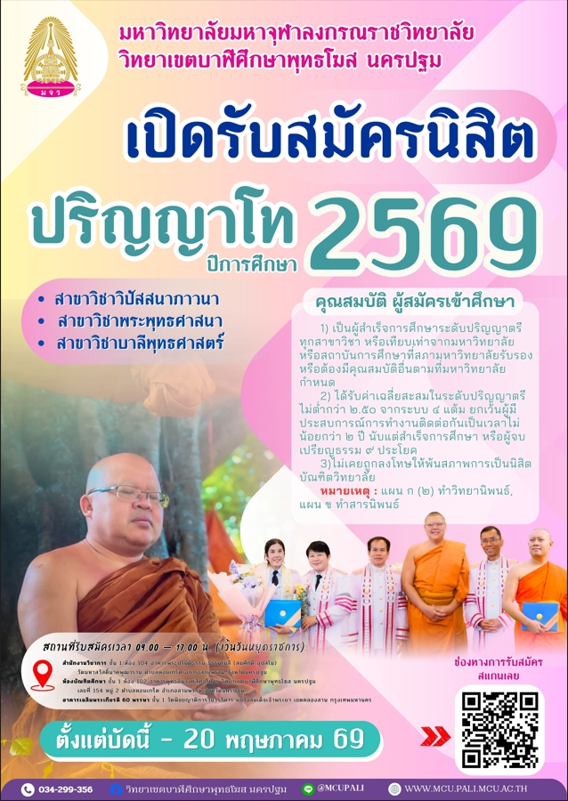 เหตุผลที่เลือกเรียน มจร บาฬีศึกษาพุทธโฆส