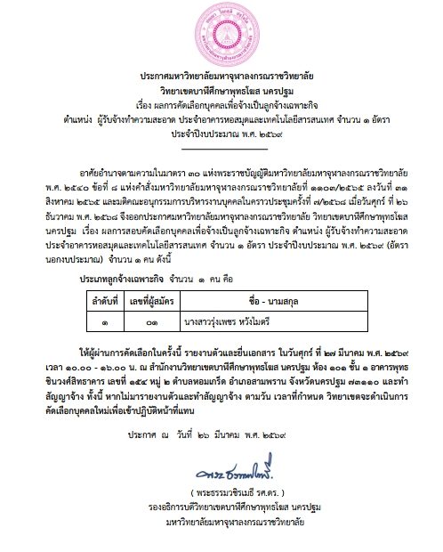 จำนวน ๑ อัตรา ประจำปีงบประมาณ พ.ศ.ศ. ๒๕๒๖๙ (อัตรานอกงบประมาณ) จำนวน ๑ คน ดังนี้