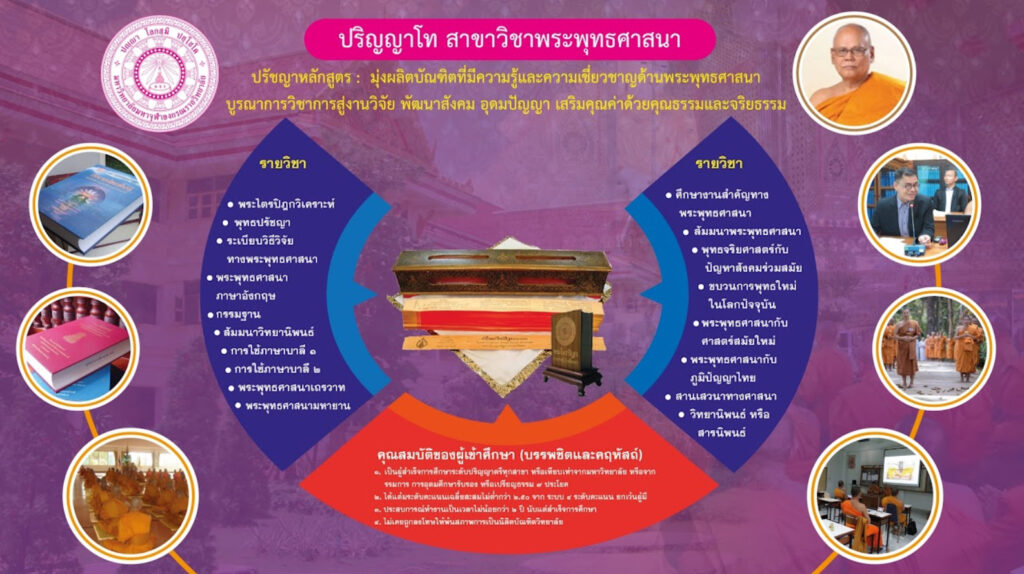 ระดับหลักสูตรพุทธศาสตร์มหาบัณฑิต ปริญญาโท เปิดสอน ๒ หลักสูตร
